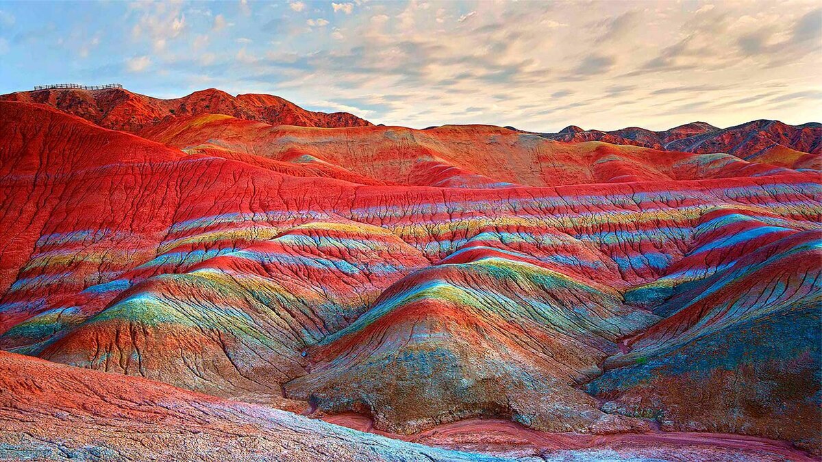 Я вам хочу рассказать об удивительном месте на Земле. Ландшафт Дэнксия это уникальное место на земле, где яркие краски красноватого песчаника местных гор, играющих на солнце множеством затейливых оттенков, радует глаз и заставляет сердце замирать от восторга. Это цветные горы Китая: они раскрашены рисунками с причудливыми, напоминающими морские волны, формами. Ландшафт Дэнксия находится в китайской провинции Ганьсу, и сюда, чтобы полюбоваться необычным пейзажем, каждый год съезжаются тысячи туристов со всего мира. Главная местная достопримечательность представляет собой уникальное геологическое образование. А название ландшафта «Дэнксия» буквально переводится как “розовое облако”.Формирование началось много миллионов лет назад в результате накопления большого количества песков и других минеральных пород. Под воздействием воздуха и воды эти породы медленно окислялись, что и стало причиной столь необычного окраса песчаников. Наслаиваясь и взаимодействуя друг с другом, различные пород