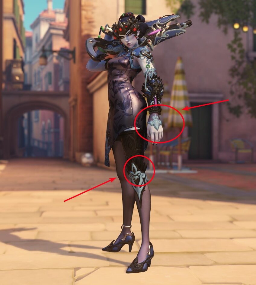 Судя по всему, в новом облике этому символу будет уделено больше внимания — наша ставка на то, что fleur-de-lis заменит татуировку Вдовы на спине. Однако не стоит забывать, что облик будет эпическим, так что, скорее всего, каких-то крупных деталей, сильно меняющих образ Вдовы, не будет.