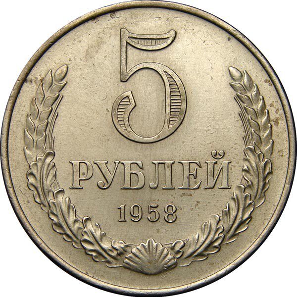 5 копеек 1958 года. Диаметр 25 мм, вес 5 г.