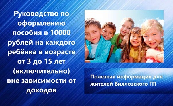 Как правильно подать заявление на выплаты 10000р семьям с детьми от 3 до 16 лет