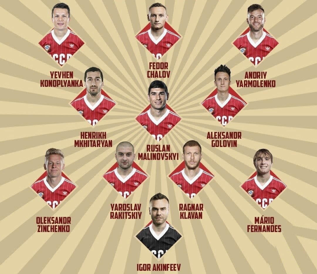 Всем привет. Сегодня мы составим сборную из игроков из стран СНГ(Содружество Независимых Государств). Многим интересно узнать какой бы был состав футбольной сбор в случае если бы СССР не распался. И так давайте посмотрим: Вратарь-Игорь Акинфеев "Россия" (ПФК "ЦСКА") Правый защитник-Марио Фернандес "Россия" (ПФК "ЦСКА") Правый центральный защитник- Рагнар Клаван "Эстония" (ФК "Кальяри") Левый центральный защитник- Ярослав Ракицкий "Украина" (ФК "Зенит") Левый защитник-Александр Зинченко "Украина" ("ФК "Манчестер Сити") Правый центральный полузащитник- Александр Головин "Россия" ("ФК Монако") Центральный полузащитник-Руслан Малиновский "Украина" ("ФК Аталанта") Левый центральный полузащитник- Генрих Мхитарян "Армения" ("ФК Рома") Правый вингер- Андрей Ярмоленко "Украина" ("ФК Вест хэм ") Форвард- Фёдор Чалов "Россия" (ПФК "ЦСКА") Левый вингер- Евгений Коноплянка "Украина" ("ФК Шахтёр") Пишите кого вы бы добавили в эту сборную. И кого заменили бы в стартовым составе и на кого. Т