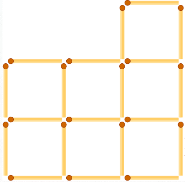 Перед вами спички, выложенные в определенном порядке. 1. Сможете ли вы переложить 7 спичек так, чтобы получилось 4 квадрата? 2. Переложите 2 спички так, чтобы получилось 5 одинаковых квадратов. 3. Выньте 16 спичек так, чтобы из оставшихся образовались один квадрат и 4 равных ему по величине шестиугольника. Ответы находятся ниже . . . . . . . . . . Ответы 1. Переложить 7 спичек так, чтобы получилось 4 квадрата. 2. Переложить 2 спички так, чтобы получилось 5 одинаковых квадратов. 3. Вынуть 16 спичек так, чтобы из оставшихся образовались один квадрат и 4 равных ему по величине шестиугольника.