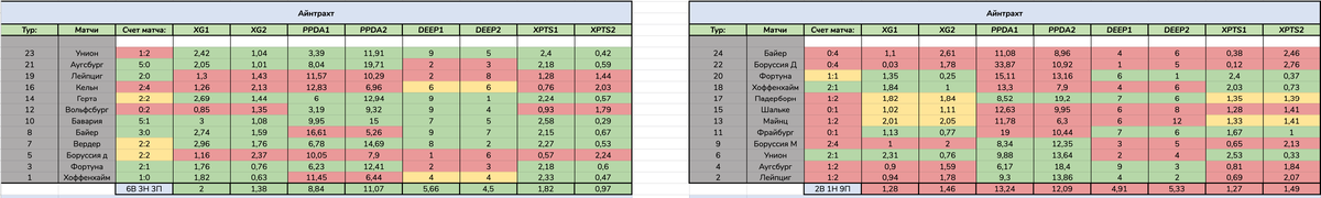 Исходя из всего это можно сделать вывод: по XG Айнтрахт является командой выше среднего с небольшим перевесом в пользу домашних матчей.
