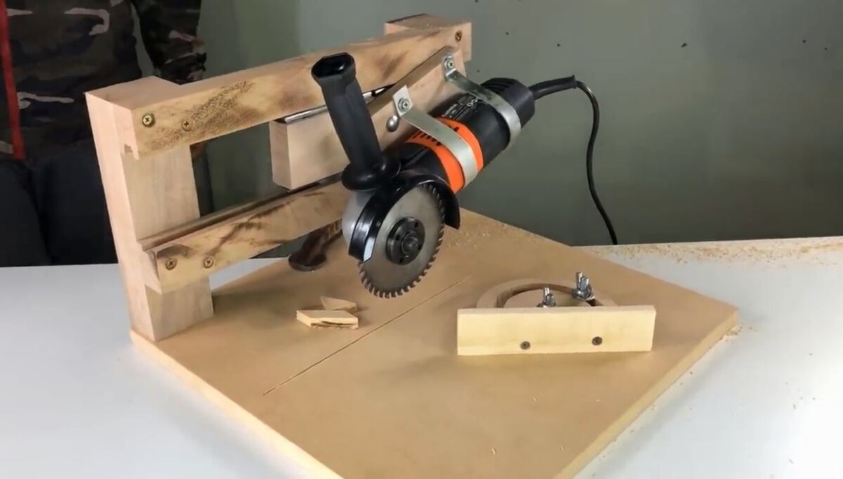 Рады видеть Вас на нашем канале! В прошлых статьях мы уже показывали, как можно облегчить работу с болгаркой и даже собрать с ее помощью удобный распиловочный станок. Подробнее можно посмотреть здесь и здесь. Сегодня, мы покажем Вам, как сделать универсальный станок и для болгарки и для дрели из подручных средств. И так начнем! Из ДВП вырезаем два листа для основания. В одном листе по центру отмечаем место для стойки. Выпилиываем отверстие и склеиваем листы между собой (можно использовать только саморезы). Устанавливаем брус в отверстие и крепим с помощью угольников и болтов. Добавляем пару болтов для крепления с основанием. Теперь, нужно изготовить зажим для дрели. Берем два бруска, зажимаем между ними кусок дерева. Просверливаем отверстие под нашу дрель. Под длину брусков вырезаем из ДВП четыре дощечины одинковых размеров. Из них мы будем делать подвижный короб на стойку И просверливаем отверстия для болтов. Делаем отверстия под эти болты в двух наших брусках и прикручиваем к этой до