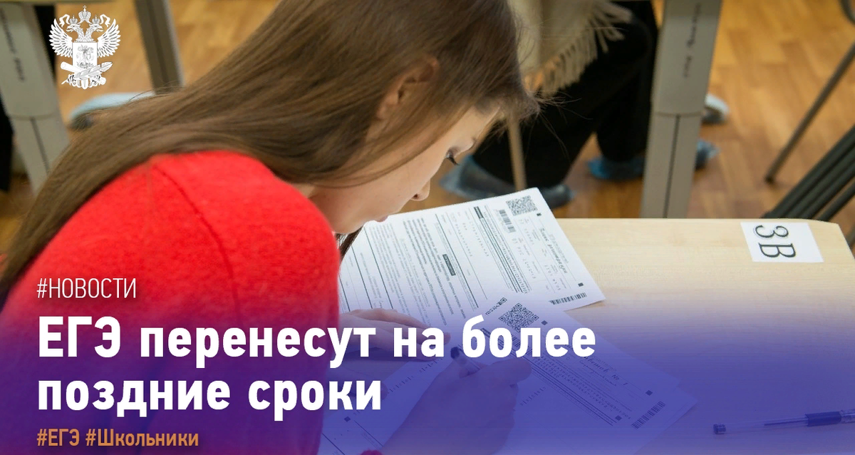Как сообщает министерство просвещения Российской Федерации в официальной группе Вконтакте Цитирую: Исходя из сложившейся эпидемиологической ситуации сроки проведения ЕГЭ в этом году будут перенесены с 8 июня на более поздний период. В ближайшие дни все сроки будут утверждены Правительством и закреплены на законодательном уровне Государственной Думой и Советом Федерации.