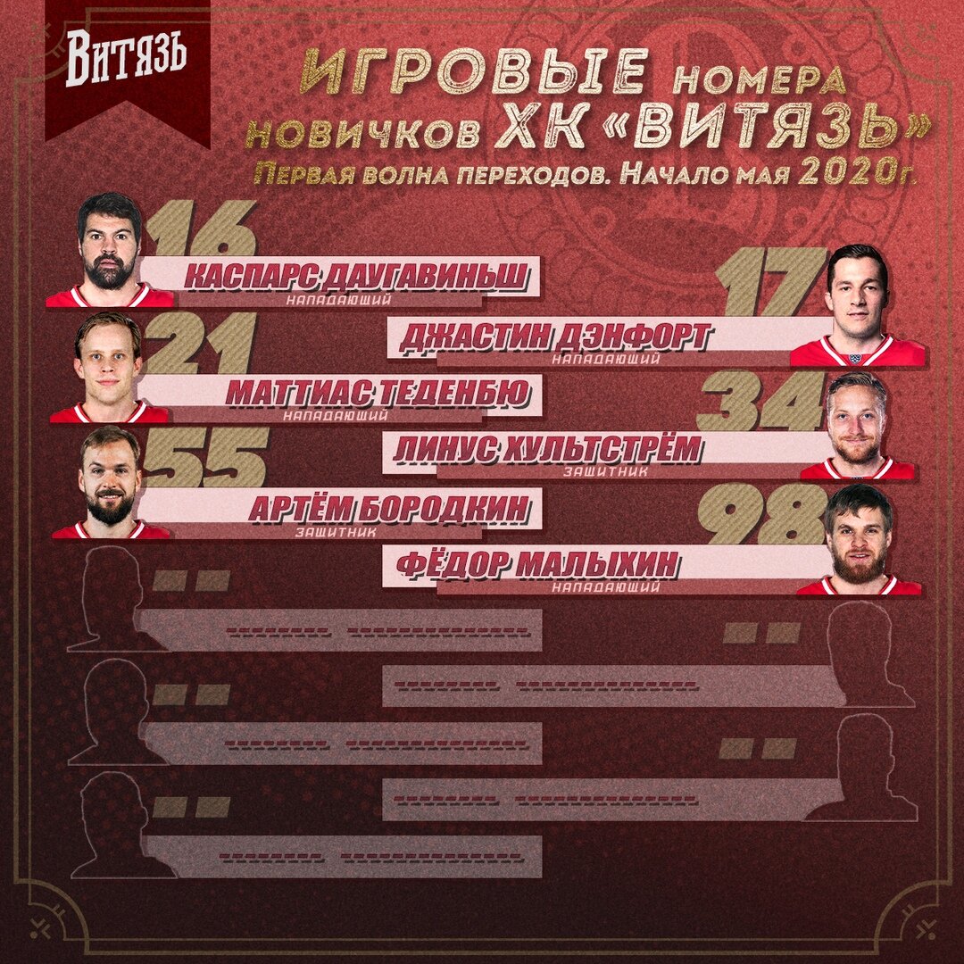 Встречаем игровые номера новичков ХК «Витязь»! Сезона 2020/21