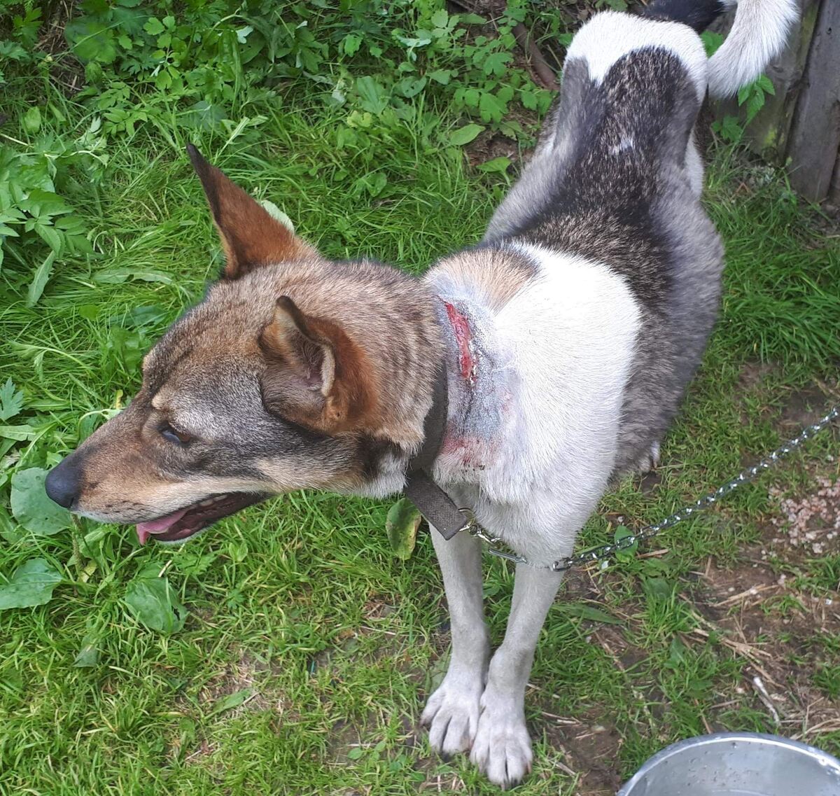 Который и довел его до такого состояния. Собаку сразу же отвезли к ветеринару, цепь убрали, рану обработали, назначили антибиотики. Во время всех этих болезненных процедур песик ни разу не пискнул и не проявил признаков агрессии.