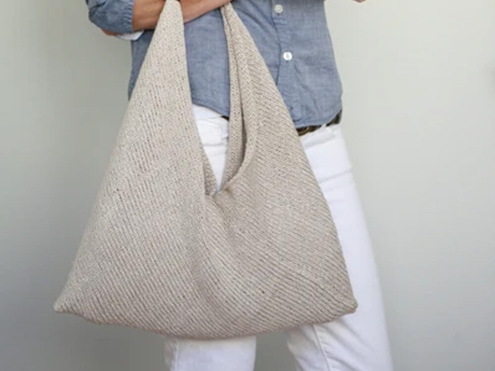Все время казалось, что связать сумку спицами сложно. Как правило, все вяжут сумки крючком. Я в вязании крючком не большой специалист, хотя перед новым годом даже мышку связала. Но вот попалась мне на глаза вот такая простая сумочка. Чтобы она получилась, действительно, надо просто связать прямоугольник. Ну и еще ручку к сумке. Я перевела для вас описание вязания такой сумки. Как Вы понимаете, чтобы сумка держала форму, желательно вязать из толстой пряжи и спицами большого размера. В частности, эту сумку вязали спицами № 10. Сумка, вязаная спицами из прямоугольника Размер прямоугольника, который надо связать, должен иметь соотношение сторон 1:3. Т.е. если ширина 25 см, как у этой сумки, то длина будет ровна 75 см. Да, для вязания этой сумки набиралось 30 петель. Далее листайте карусель. Здесь показано, как сложить трикотажное полотно чтобы получилась сумка. Если кому-то непонятно как сложить прямоугольник, чтобы получилась сумка (как мне, например), вот более понятная раскладка, зде