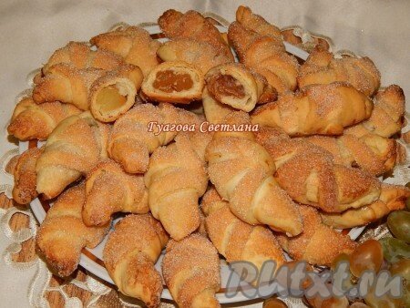Этот рецепт рогаликов из быстрого дрожжевого теста стал моим любимым! Тесто делается быстро, с ним легко работать. Рогалики получаются очень нежными, с легкой хрустинкой снаружи и мягкими внутри. Начинки можно менять и каждый раз это будет что-то новенькое! Особенность этого рецепта ещё и в том, что в тесто не добавляются ни яйца, ни сахар. Вполне хватает сахара, который есть в начинке и на поверхности рогаликов. Рекомендую попробовать! Ингредиенты Для приготовления рогаликов из быстрого дрожжевого теста потребуется: Для теста: