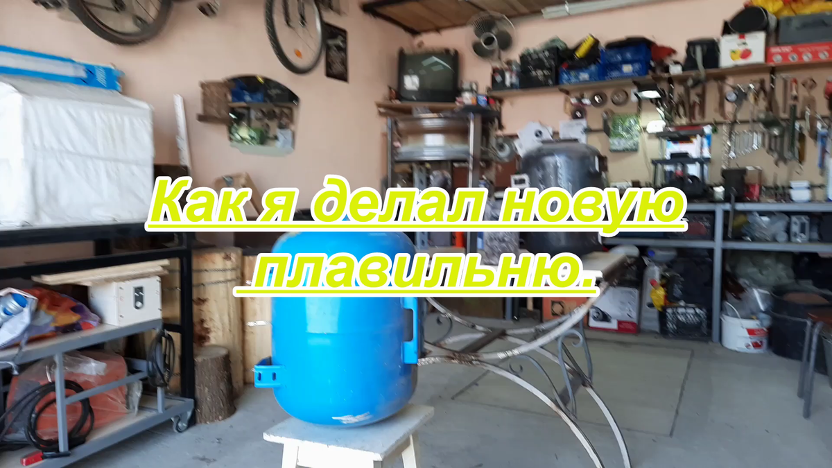 Здравствуйте мои дорогие зрители-читатели. В этом рассказе-видео я показал, как можно бесплатно сделать плавильню для плавки алюминия и других металлов. Для этого у меня потребовалось только желание. Сильное желание плавить металлы. Это еще с дества так как вырос я в заводских, кварталах и мы с пацанами часто жгли костры и плавили свинец… Если Вы смотрели ролики, то видели, что плавку алюминия я производил вот на этом горне… Он конечно плавит алюминий, но тяжело… Так как он создавался для кузнечных дел. Поэтому я решил сделать создать самую дешёвую плавильню. Итак, взяв гидроаккумулятор я принялся творить… Кстати это только один из вариантов как можно сделать плавильню. У меня это вариант-попользовался и убрал до поры до времени. Мои инструменты должны быть мобильными и не дорогими. Дак вот разметив линию, я отрезал болгаркой верхнюю крышку. Затем к корпусу приделал ноги. Чтоб стоял твёрдо на земле. Затем из имеющийся арматуры я сварил каркас-решетку. И отправился в о