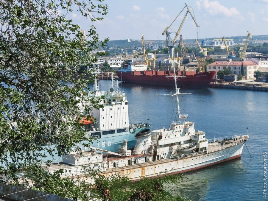 Давайте подойдем к "Ангаре" поближе, после экскурсии на танкер "Дон", пока есть такая возможность, чтобы рассмотреть ее, но для начала несколько видов на нее и Южную бухту из сквера Интернационалистов.