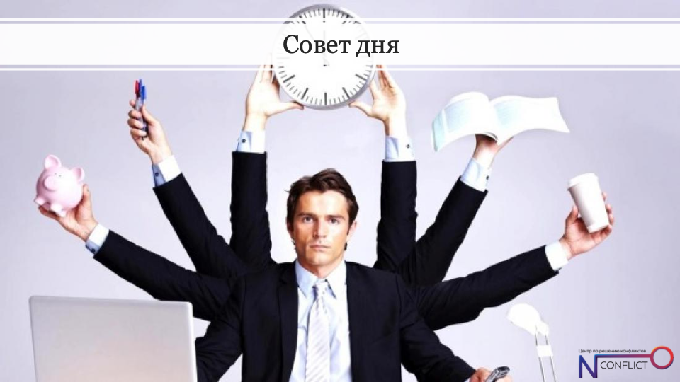 Все мы хотим успевать все и затрачивать на это минимум времени и сил. А как это сделать - вам расскажут специалисты Центра по разрешению конфликтов "No conflict". 1) Установите лимит времени на социальных сетях, выключите новости (посмотрите что происходит у ваших друзей после выполнения поставленных задач), используйте клавиатурные сокращения; 2) Подберите комплекты одежды заранее и не тратье время на выбор одежды и аксессуаров каждое утро. Разберите шкаф и избавьтесь от вещей, которые не носите; 3) Визуализируйте вас конечный продукт, действуйте, а не ожидайте подходящего момента, будьте решительными, не тратьте время на записывание сообщений словами- запишите на диктофон; 4) Управляйте стрессом, занимайтесь спортом и больше спите; 5) Выполняйте сначала простые дела, выделяйте одно главное дело каждый день, установите еженедельный график выполнения поставленных задач; 6) Установите свое меню, питайтесь по расписанию и перейдите на здоровое питание; 7) Избегайте мелких бытовых пр