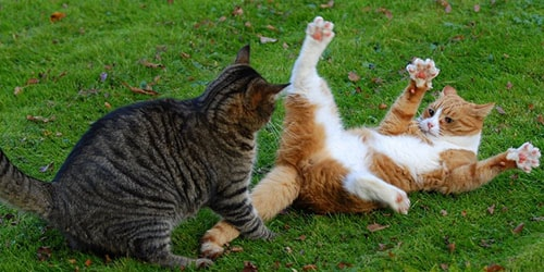 Борьба кошек обычно является результатом перенаправленной агрессии, игровой агрессии или страха агрессии: