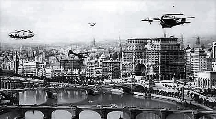 Британский фантастический фильм, который был снят как немой, а потом озвучен, при этом время действия в нём сменилось с 1940-х на 1950-е. Режиссёр Морис Элви явно стремился снять кино, похожее на монументальный «Метрополис» Фрица Ланга, вышедший двумя годами ранее, но не смог приблизиться к оригиналу. Сегодня его работу можно смотреть как образец ретрофутуризма в стимпанковых тонах с видеотелефонами и пассажирскими дирижаблями.
