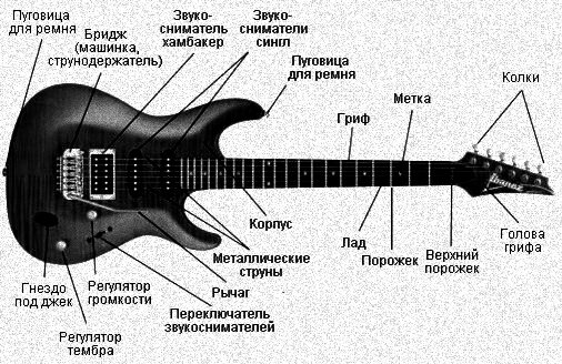 Электрогитара - разновидность гитары с более плоским корпусом. Самое главное отличие электрогитары от акустической (есть не брать в счёт полуакустику) - это звукосниматели, стальные струны, комбики, примочки, и различные усилители… Собственно, что она из себя представляет: Также у нашей электрогитары много сходств с акустической гитарой. Поговорим немного о происхождении этого инструмента. Electro String Company - первая компания, которая выпустила первые гитары на продажу. Электрогитара стала очень популярным инструментом, для различных жанров. От поп-музыки до тяжёлого блэк-метала. На данный момент даже неизвестно кто из музыкантов первый перешёл с акустики на электрогитару. Споры идут до сих пор… Интересный факт: электрогитару на сцене очень редко никуда не подключают. В основном их включают в примочку (это такая педаль, нажав на которую, гитара будет звучать иначе, с разными эффектами). Новички очень любят баловаться с примочками, и могут почувствовать себя виртуозами, но эт