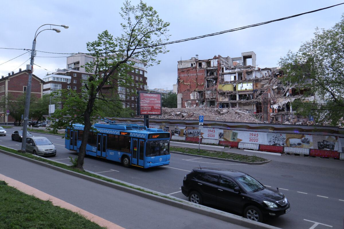 Символичная ситуация вышла. Уничтожаемый и любимый москвичами троллейбус на фоне уже уничтоженного любимого москвичами кинотеатра "Соловей". Кинотеатра нет уже несколько месяцев, ну а троллейбус чуть задержался, и его не будет больше только с сегодняшнего дня.
