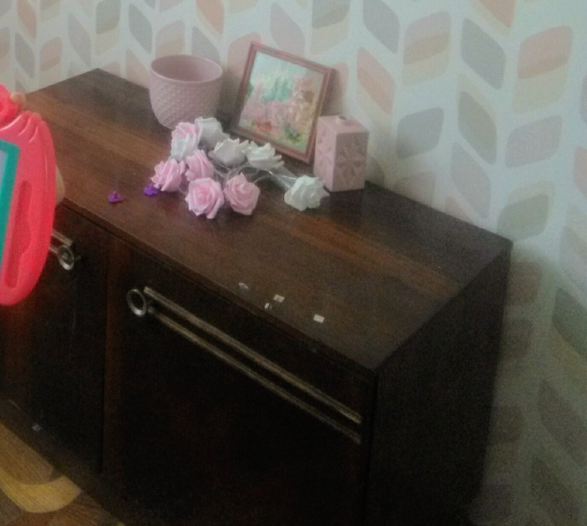 Всем привет! Переделка мебели это спорное занятие. Я знаю, что не каждому нравится пользоваться старыми вещами. А так же не все любят заниматься творчеством и делать что то руками. При переделке старой мебели не всегда получается то, что хотелось. Порой может получиться хуже или вещь все равно будет выглядеть как старая, но покрашенная )) Лично я к такому творчеству отношусь так : "А почему бы и нет!" В любом случае это опыт и способ проявить себя. А выбросить можно и потом, вдоволь наигравшись )) У меня был трельяж. Советский, полированный. Убрали зеркала и мне очень понравилась форма. Такая тумба будет хорошо под телевизор. Решила красить. Дверки сохранить не удалось, так как они плохо закрывались, были перекошены петли. Самой мне с этим было не справиться, поэтому дверки и петли я просто открутила. Зашкурила все поверхности. Лак был таким толстым слоем, что убрать его было невозможно, поэтому я просто шкурила хорошо, настолько на сколько смогла. Далее отверстия и сколы зашпакл