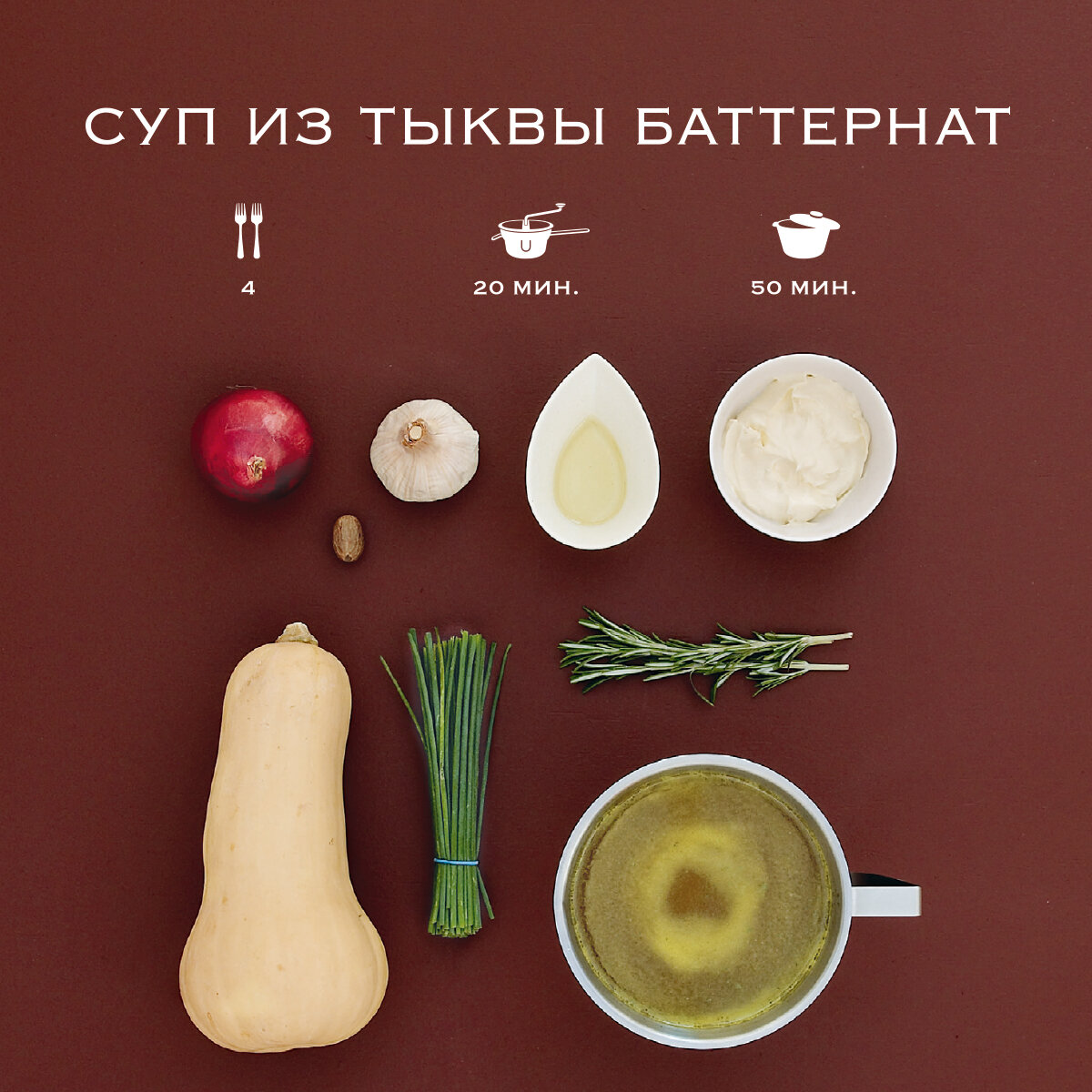 Пока мы все сидим дома, есть чуть больше времени на готовку. Точнее есть время попробовать сделать что-то, что еще не практиковали. Вкусная еда — один из способов порадовать себя в это тревожное время. Главное — не переедать, а есть интересную и приятную пищу. Даже если вы немного «перебрали», не корите себя, позже с этим разберетесь, а пока берем эндорфины из вкусностей. Мы собрали для вас три простых рецепта для полноценного обеда (компота не хватает) из тех продуктов, которые можно найти почти в любом магазине вашего города. СУП ИЗ ТЫКВЫ БАТТЕРНАТ Если у вас нет именно баттерната — можно заменить другой тыквой. Единственное — всегда помните о сладости. Например, крупные дачные часто очень сладкие, поэтому нужно добавит что-нибудь острое, чтобы не получился десерт. Рецепт рассчитан на 4 порции. Время готовки около часа (с подготовительным этапом и т.д.) ИНГРЕДИЕНТЫ НА ЗАМЕТКУ. Этот базовый суп можно заправить, например, 1 ст. л. красной тайской пасты карри или 1 ст. л. тертого имб