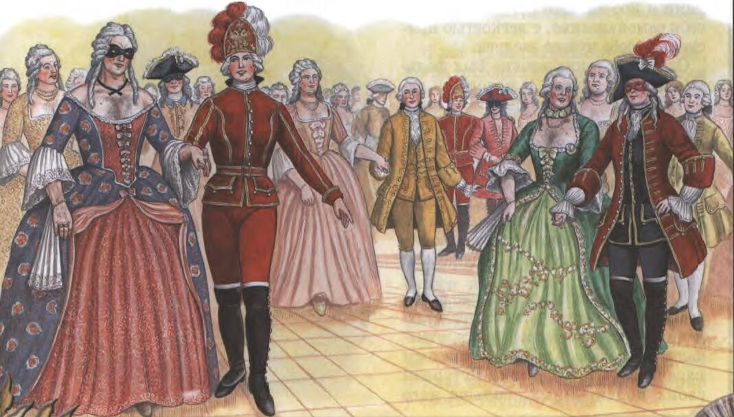 Но вот под торжественную музыку явилась сама Елизавета в мундире гвардейца. И, как и положено новоявленному кавалеру, пригласила на менуэт своего фаворита Алексея Разумовского. Но вот менуэт закончился, пришла очередь мазурки, и императрица пригласила на танец французского посла, тоже одетого дамой.