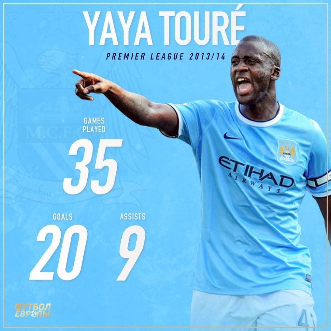 ⚡Статистика Яя Туре в АПЛ в сезоне 2013/14: Лучший полузащитник «Ман Сити» за всю историю!💯