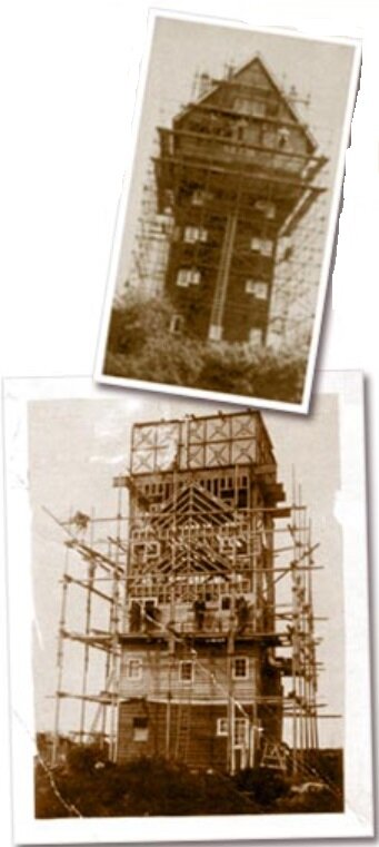 House in the Clouds , Thorpeness, Suffolk, UK. И так, новая статья про старую водонапорную башню Первая заметка Вроцлавская водонапорная башня Вторая заметка Владимирская водонапорная башня Башня строилась для обеспечения потребности водой деревни Торпенесс, Саффолк, Англия. Башня была построена лондонской компанией Braithwaite Engineering в 1923 году. Закачка воды происходила с помощью водяной мельницы с ветровым и бензиновым приводом, используемым в качестве вспомогательного источника энергии в периоды безветрия. При постройке была решена сложная задача - скрыть водный бак и вписать башню в ландшафт. Гленкэрн Стюарт Огилви и Ф. Форбсом Гленни (архитекторы) и Х. Г. Креп (менеджер по работе) блестяще замаскировали башню под дом, который сейчас можно назвать коттеджем на деревьях. Этот коттедж является фактически только верхней частью здания, в котором размещался резервуар для воды. Несущая стальная конструкция была заколочена, чтобы обеспечить уникальное жилое помещение под резерв