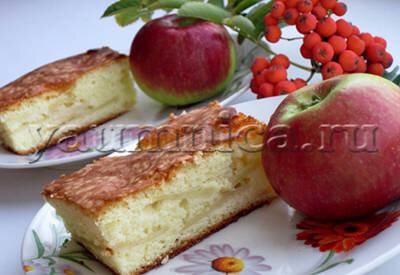 6. Пирог достаем из духовки, слегка остужаем и нарезаем порционными кусками. По желанию сверху слегка посыпаем сахарной пудрой. Всем желаю приятного аппетита!