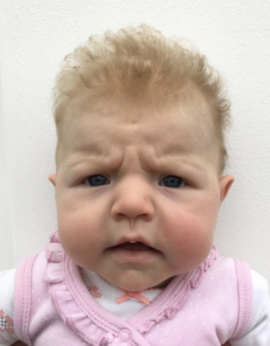 Трехмесячная Оливия покорила интернет благодаря своему вечно недовольному выражению лица. Ее мама Алиса Транфилд шутит, что это потому, что девочка родилась в 2020 году. Ещё бы! Сначала угроза войны между Америкой и Ираном, затем этот злосчастный коронавирус, пожары в Австралии, ещё и мировой кризис. И как тут быть довольным? А все началось с того, что Алиса, учительница танцев из Лестершира, вдруг обнаружила, что из-за пандемии до сих пор не сделала фотографии для документов дочери, которой требуются 2 паспорта, так как девочка является гражданкой Англии и Австралии. Молодая мама решила сфотографировать Оливию в оранжерее их дома, так как там много света и имеется белая стена. «Мой муж Джеймс работал из дома, трехлетний сын играл в своей комнате, а Оливия как раз не спала, поэтому я посчитала, что это отличная возможность сделать кадры для документов. С первого же дня своего рождения у неё был очень сердитый вид! Когда ей было 6 недель, педиатр спросил у меня, улыбается ли она уж