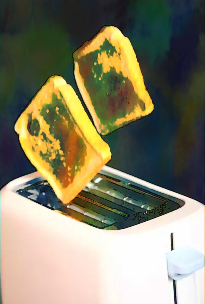 Устройство для поджаривания гренков, или тостер, работает следующим образом: внутри тостера есть толстые провода, расположенные в форме панелек; эти провода нагреваются и подсушивают вашу еду когда вы нажимаете на рычажок, опускающий хлеб, он зацепляется за крючок внизу, включая нагреватель. Пока хлеб подсушивается и подрумянивается, специальный металлический выключатель тоже нагревается и при этом изгибается. Через определённое время он изгибается настолько, что может толкнуть стержень, который освобождает рычаг от крючка, и поджаривание гренков прекращается. При этом освобождается также пружина, которая выталкивает рычажок вверх, и ваши тосты выскакивают. Всё металлы при нагревании расширяются. Но каким образом изгибается металлический выключатель в тостеретостер? Выключатель изгибается, потому что он изготовлен из двух металлов, соединённых вместе, и называется биметаллический выключатель. Один из этих двух металлов 7(обычно латунь) при нагревании расширяется быстро, а другой мед