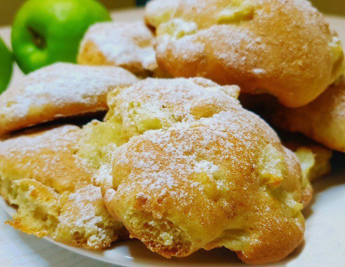 Время приготовления – 40 мин ИНГРЕДИЕНТЫ на 7 порций: Яйцо куриное — 2 шт Сахар — 100 гр Ванильный сахар — 1 пакетик Масло сливочное — 100 гр Мука пшеничная (может пригодится только 300 г, в зависимости от размера яиц) — 350 гр Разрыхлитель теста — 15 гр Яблоко — 2 шт СПОСОБ ПРИГОТОВЛЕНИЯ: Взбивать яйца до образования пышной пены, добавить сахар, ванильный сахар. Консистенция массы будет густая, похожа на крем. Добавляем сливочное масло комнатной температуры, взбиваем еще 1-2 минуты Просеиваем половину муки, взбиваем. Добавляем разрыхлитель и оставшуюся муку, перемешиваем вручную Яблоки нарезать соломкой или крупными кубиками, добавить в тесто Ложкой выложить массу на противень. В среднем получится 12-16 печенья. Выпекать 35 мин при 180С. Приятного аппетита!