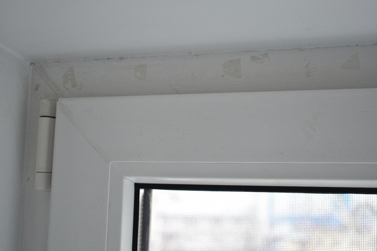 Застарелые следы от скотча на оконной раме – последствия новогоднего декора