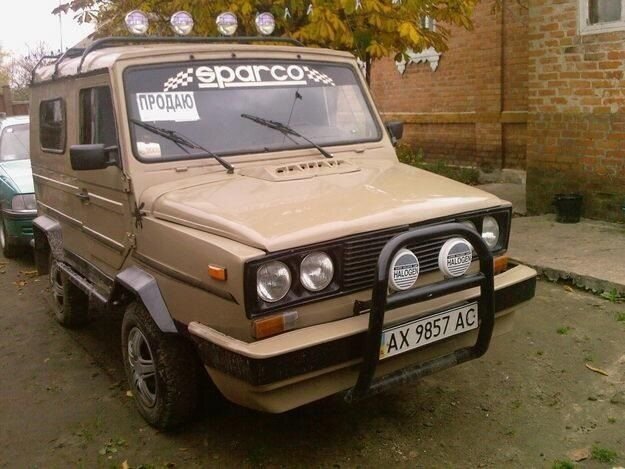 Если я не ошибаюсь, то кто-то скрестил ГАЗ-69 и старенький BMW. Получился очень странный автомобиль, который вроде бы выглядит не так уж и плохо. Скорее странно.
