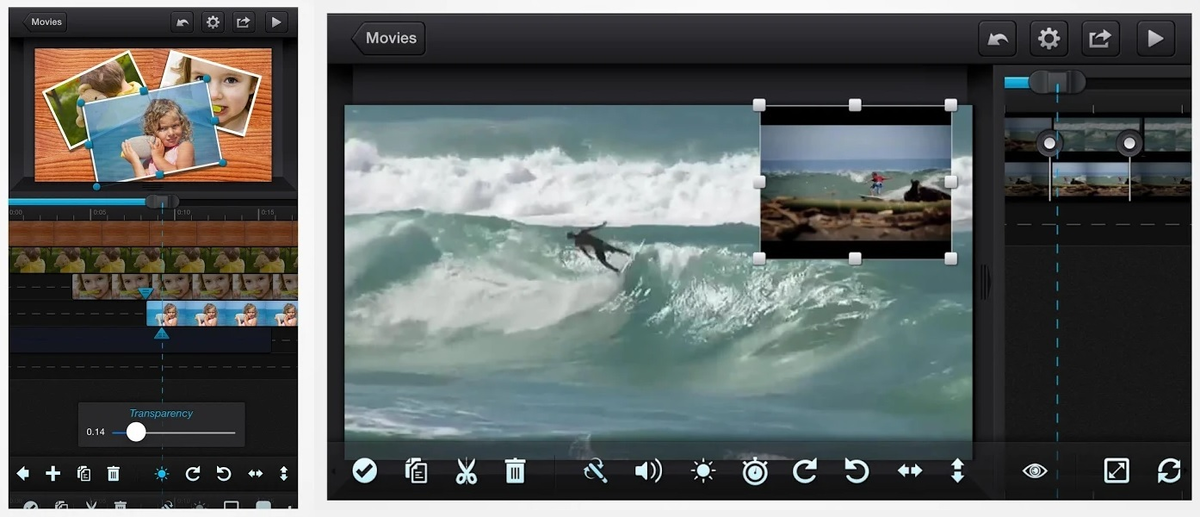 Он поддерживает два слоя видео одновременно, много слойное изображение, в дополнение к звуковым и музыкальным слоям. После ознакомления с его возможностями и выяснения того, что означают его некоторые непонятные значки, выполнения автоматических и ручных переходов, ретуширования цвета, ускорения или замедления видео - все это становится куском пирога. Приложение также очень хорошо разработано для редактирования видео смартфона в портретном режиме, но также поддерживает альбомную ориентацию для пользователей планшета.