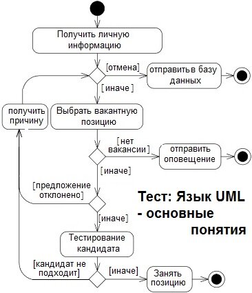 https://testy-online.com/TittlePassTests/Test_UML_1 В тесте приводятся вопросы, касающиеся основных структурных сущностей языка UML, типов отношений и сущностей. Рассматривается диаграмма классов, вариантов использования и диаграмма состояний. Есть вопросы по полям и атрибутам классов. По тесту можно получить оценку и посмотреть правильные ответы.