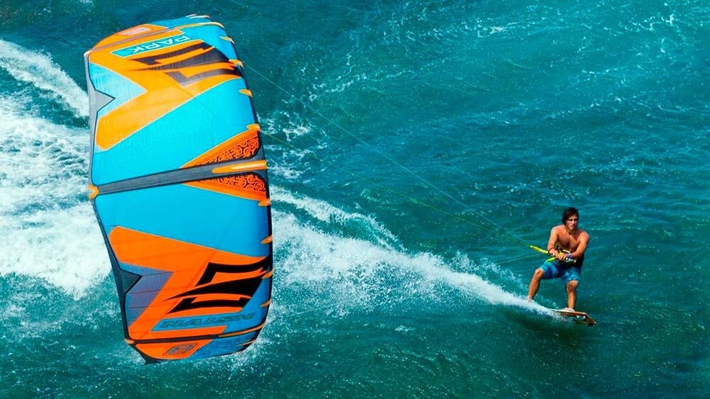 Ответ на вопрос, как называется серфинг с парашютом, простой – это кайтсерфинг. Воздушный змей, применяющийся для такого катания имеет специальную систему строп, при помощи которой крепится защитный пояс. Управление производится вручную и не требует серьезной физической подготовки. Основные сложности – это необходимость постоянно балансировать на воде, держать стабильную скорость.