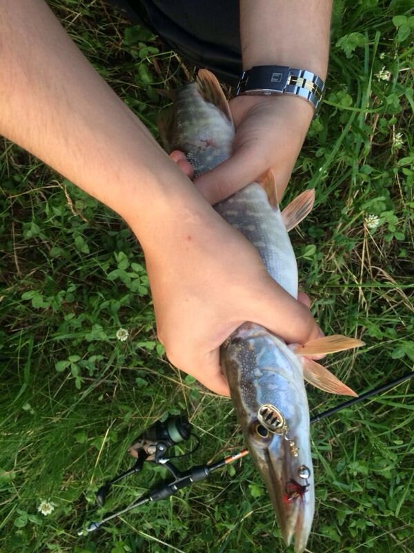 Статья на портале РНарод Решили после работа съездить на дачный прудик пока есть солнце. С собой взял новую Изабеллу, просто покидать посмотреть как она в деле да и просто руки чесались)) в пруду есть маленький окунь грамм 30-50 максимум на него и была надежда. В итоге поймал шт 5 небольших окуньков и как обычно бывает только решили собираться делаю последний заброс ииии фрикцион запел, первые мысли хороший окунь, но какое было удивление когда из воды показался маленький щурёнок. Дело в том что щуки тут никогда не было, откуда её сюда занесло не понятно. Хорошо не срезала любимую вертушку.В любом случае спиннинг обновил, заряд бодрости получил. Щучка отпущена подрастать. Автор Алексей Если вам понравилась статья, то подписывайтесь на наш портал о рыбалке! Чтобы перейти на портал, нажмите кнопку вверху статьи "Статья на портале РНарод