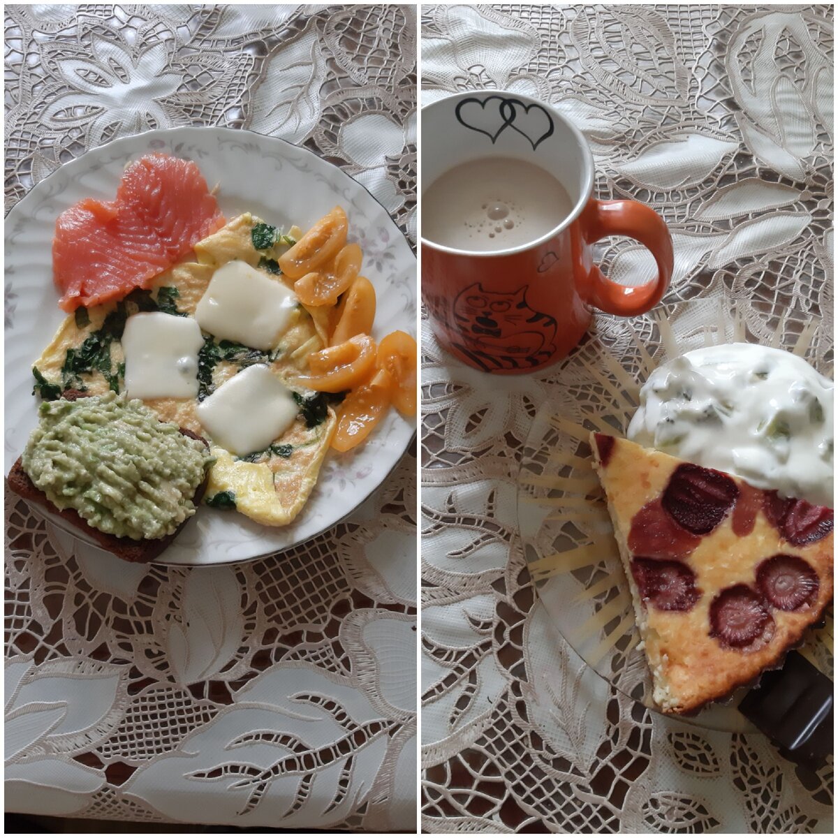 Добрый день! Мои хорошие! В продолжении вчерашнего дня, все было по меню ,как я и планировала. Единственное добавился 1 бокал красного домашнего вина с 5 лепестками имбиря в сахаре 😉👌(фото имбиря я делала). Но тем неменее утро меня порадовало - 400гр!!! Поэтому продолжаем худеть!😊 Завтрак : Омлет с руколлой и Сулугуни, помидоры чери, слабосаленый лосось и тост с авокадо. Конечно чашечка кофе с какосовым молоком, запеканка с клубникой. Натуральный йогурт с киви, кусочек темного шоколада 😋 Обед: Салат, фунчеза с грибами и болгарским перцем! Очень вкусно!!! На ужин у меня будут кабачковые блины с сыром и чуть- чуть натурального йогурта. Все рецепты можно легко найти в интернете. На ночь кефир!!! И ждем результатов на весах! Не знаю как вам , а мне очень нравится вкусно есть и худеть! В меру!!!😉😊 Делай всё с умом! Делай как я!