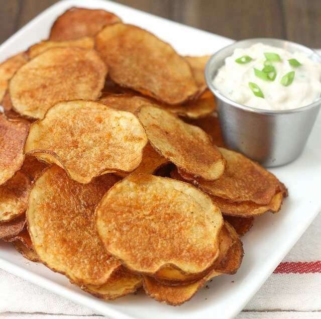 Картошку нарезать тонкими ломтиками. Промыть под водой чтобы избавиться от лишнего крахмала. Высушить бумажным полотенцем. Положить сухое бумажное полотенце на тарелку и выложить ломтики так чтобы они не касались друг друга. Поставь в микроволновку на 2 минуты 800 ват, потом перевернуть и 2 минуты с другой стороны. Готово. Приятного аппетита!