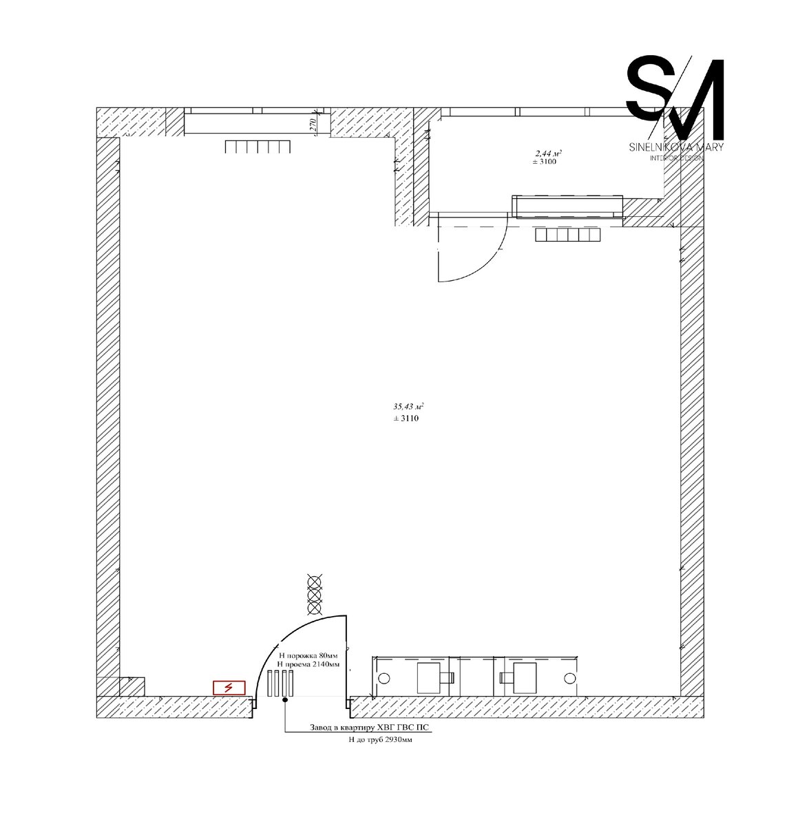 Вот такая форма квартиры которую мы будем рассматривать в новостройке. По требованиям мокрые зоны (кухня и санузел) должны располагаться справа . Мы же рассматривали различные варианты для собственника квартиры, в том числе несколько из которых были не до конца законные - такое пожелание было у Заказчика. Первый вариант - именно тот который мы в последствии утвердили и над которым работали. Мокрые зоны остались на законных местах. Нам удалось разместить тут вместительную гардеробную с постирочной зоной, спальню с индивидуальным встроенным шкафом и кухню-гостиную. К сожалению в этой квартире объединить лоджию с комнатой никак не получалось из-за неудачного проекта дома. На балконе располагается вертикальная сквозная решетка, застройщик не предусмотрел места под вн