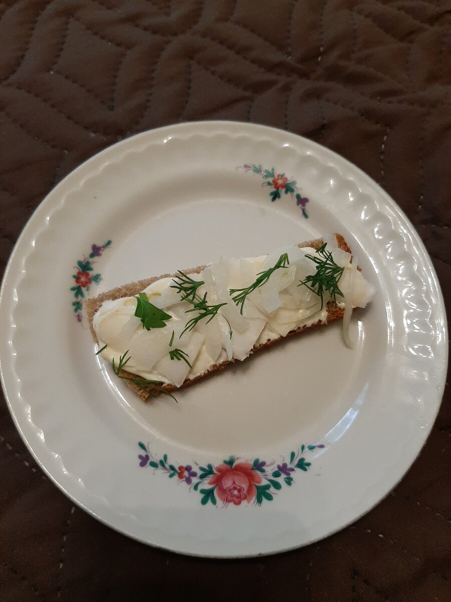 На кусочек серого или черного хлеба намазываем горчицу, потом майонез, накладываем кусочки сала, посыпаем луком/зеленым луком, можно добавить зелени. Если хочется вспомнить студенческие годы, то этот бутерброд для вас! :)