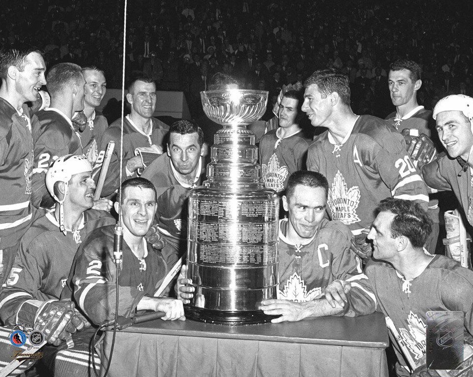 Всем доброго настроения! Сегодня, в очередной раз, мы будем вспоминать золотые времена НХЛ. Сегодня поговорим о 60-х годах прошлого столетия. Расскажем и покажем фотографии четырежды лучшей команды НХЛ 60-х. Так давайте начинать, нас ожидают великие, Торонто Мэйпл Лифс! Игроки Торонто с Кубком Стэнли, 1964 год. Капитаном команды тех лет был легендарный Джодж Армстронг. С 1951 по 1971 год защищал цвета Мэйпл Лифс. С 1957 по 1969 год носил нашивку «С» на своем свитере. Великий вратарь Торонто- Джонни Бауэр. Кстати Бауэр имеет украинские корни. В 1940 году, когда ему было 15 лет, Бауэр, приписав себе пару лет, записался добровольцем в Канадскую Армию, чтобы попасть на фронт. В 1944 году вернулся из Англии, где проходила его служба в родную Канаду. 12 сезонов провел в Мэйпл Лифс, четырех кратный обладатель Кубка Стэнли, дважды обладатель «Везина трофи». Легенда Мэйпл Лифс- Тим Хортон. Один из самых физически одаренных игроков НХЛ за всю историю. Провел 486 матчей подряд, без ед