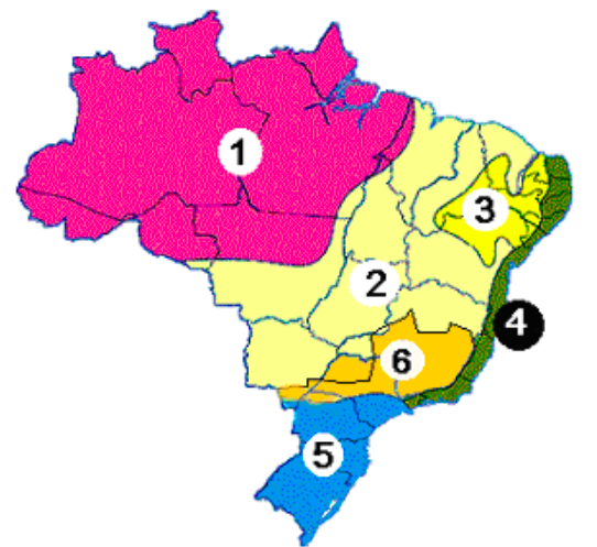 1. Зона экваториального климата – преобладает на севере страны в штатах Амазонас (Amazonas порт.), Пара (Pará порт.), Амапа (Amapá порт.), Акри (Acre порт.), Рондония (Rondônia порт.), северная часть штата Мату-Гроссу (Mato Grosso порт.).
