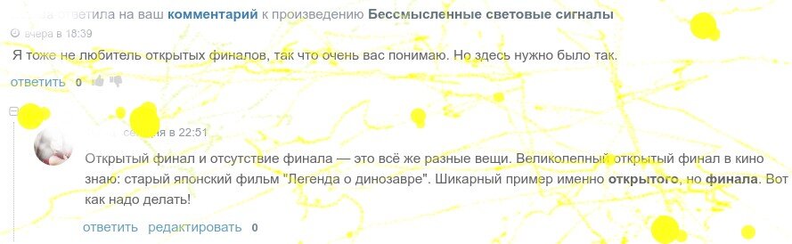Учитесь, графоманы! Открытый финал и отсутствие финала — это всё же разные вещи. Великолепный открытый финал в кино знаю: старый японский фильм "Легенда о динозавре". Шикарный пример именно открытого, но ФИНАЛА. Вот как надо делать! Был сегодня разговор на автортудей: Легенда о динозавре: Японский фильм в жанре кайдзю-эйга, вышел на на экраны в СССР в 1979 году под названием «Легенда о динозавре». Вот как выглядит, собственно, финал фильма: Девушка падает в трещину, но успевает схватиться за ствол поваленного дерева. Асидзава пытается спасти возлюбленную. Их руки долго тянутся навстречу и наконец находят друг друга на фоне пылающего огня. Данные Википедии, сюжет фильма Вот так надо финалить: Учитесь, графоманы!