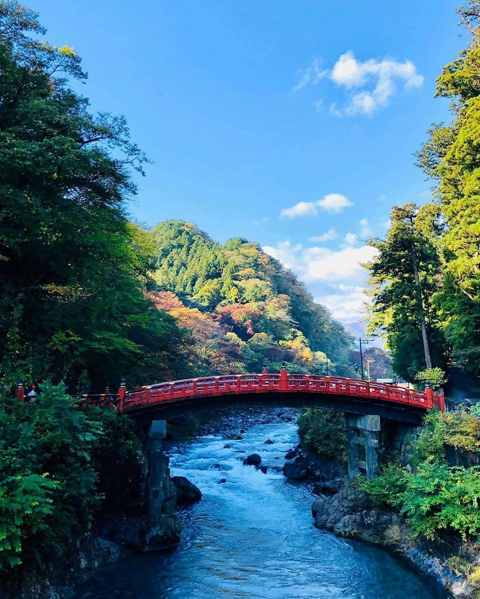 Священный мост Синкё в Никко заслужено занимает почетное место среди красивейших мостов Японии. Длинной 28 метров, он возвышается над рекой и создает прекрасный вид. История этого моста начинается с легенды о священнике Сёдо. На своём пути к горе Нантай, чтобы помолиться за благополучие страны, он не мог пересечь реку и начал молиться. К нему снизошло божество Дзиндзя-Дайо с красной и синей змеями в руках. Они превратились в мост, и священник смог перейти. Погодные условия много раз повреждали мост, и он был реконструирован снова и снова, а в 1636 приобрел сегодняшний вид. До 1973 года на мост не было позволено ступать обычным людям, только представителям императорской семьи и генералам, но после его открытия он стал одной из любимых достопримечательностей Никко. С 1999 года мост причислен к мировому наследию ЮНЕСКО. Этот покрытый красным лаком деревянный мост, изгибающийся над рекой Дайя (Daiya), находится в том месте, где, по преданию, Седо Сенин (735-817 г.) пересек реку на с