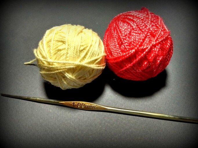 Для вязания я пользовалась остатками тонкой акриловой пряжи. Красивый моточек вкусного розового цвета остался после того, как я вязала топиарий с целым букетом роз. Для достаточной плотности вязания взяла крючок №1 (1 мм) для основной части и крючок №2,5 (2,5 мм) для имитации крема.