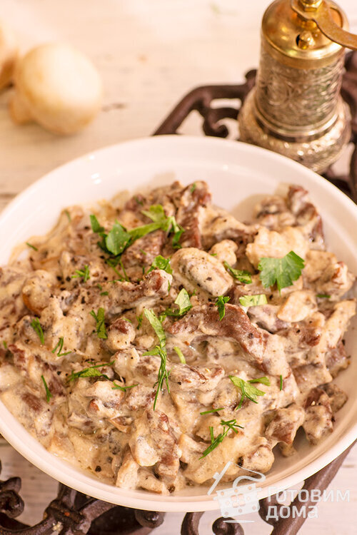 Посмотреть пошаговые фото к рецепту Бефстроганов из говядины с грибами и оставить комментарий можно на нашем сайте Готовим дома.
