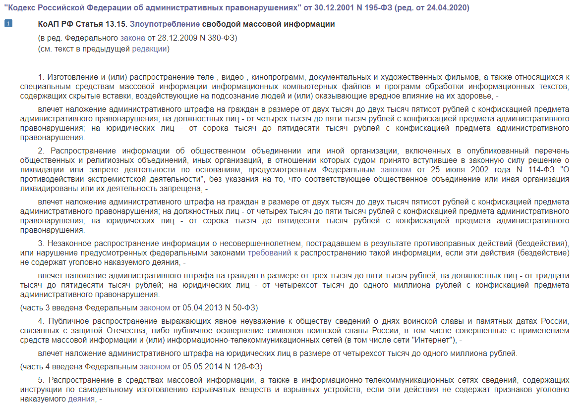 КоАП РФ Статья 13.15. Злоупотребление свободой массовой информации