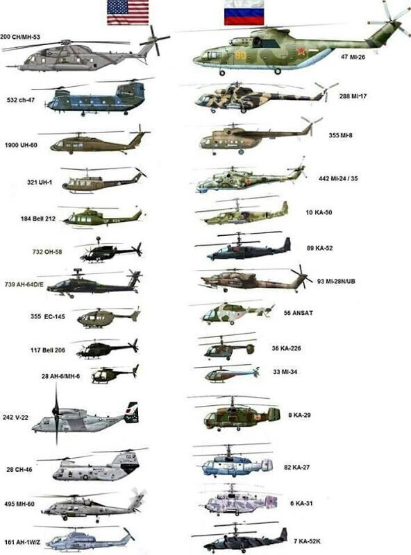 Сравнение вертолетного парка США и РОССИИ на начало 2020 года