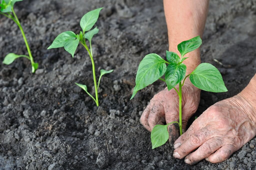 Мама рассказывает, что высадила рассаду болгарского перца вместе с помидорами в открытый грунт. Рассада уже большая, сантиметров 25-40, на некоторых растениях уже цветочки начали появляться.