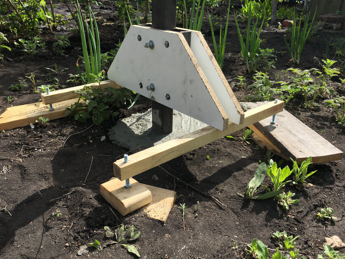 Если Вы сами решили установить забор на своем участке, то конечно же Вам хочется делать это в свое удовольствие, а не сопровождать работу негативными эмоциями. Пользуясь "дедовским" методом установки столбов камнями в распор я получил ряд своих негативных эмоций, когда эти камни постоянно падали у меня на дно. Скорее всего у меня такие руки, но из этого последовала идея создания приспособления о котором я Вам сегодня расскажу. Это приспособление позволяет очень точно, просто и быстро выравнять столбы, и задать высоту столба над уровнем земли. Оно очень легко в изготовлении, лично я потратил 2 часа на два таких приспособления. Ниже приведен чертеж этого приспособления Ниже я приведу ряд фотографий как я изготавливал это приспособление, думаю Вам будет все понятно, а если что то непонятно Вы всегда можете спросить меня об этом в комментариях. Если Вас заинтересовала эта статья, то можете так же почитать про "приспособление для установки перекладин забора" здесь. Спасибо за внимание:)