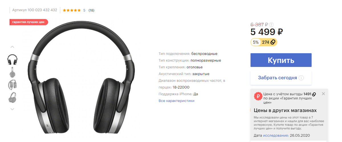 1. Goods - беспроводные наушники Sennheiser HD 4.50 BTNC Black за 5499₽.